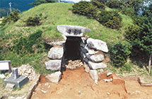 綾塚古墳よりもやや古く、6世紀終わり頃の築造と推定されています。黒田小学校校庭にあり、子ども達が歴史を学ぶための生きた教材ともなっています。