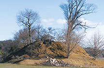 かつてこの地を治めた中畠家の居城跡。今は畑の中に浮島のような小山が痕跡として残るのみです。