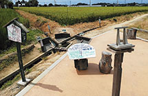 三県境とは、3つの県で構成される1か所の県境のことを言います。全国に40カ所以上あると言われている三県境の中でも唯一平地に存在し、歩いて三歩で回れる三県境はここだけです。