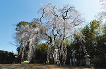 高さ約16メートル、樹齢推定250年の巨木です。弘法大師が諸国行脚の折にこの地を訪れ、手にした杖を地面にさしておいたところ、不思議にも根がはり見事な花を咲かせたという伝説が残されています。