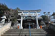 学問の神様である菅原道真公を祀っています。社殿には、全国でも珍しいとされる百人一首の天井画があります。