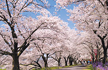 「日本さくら名所百選」に認定された中国地方随一の桜の名所で、毎年3月下旬から4月上旬には、全長約2キロメートル、800本の桜のトンネルが楽しめます。ぼんぼりが風情良く、夜桜も楽しめます。