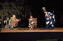 薪の明かりに照らされた幻想的な舞台で、能と狂言が演じられます。