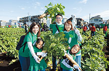 練馬大根の収穫期を迎えた畑で、制限時間内に抜いた大根の本数や長さを競う一大イベントです。なかなか抜けない練馬大根を相手に悪戦苦闘し、大根抜きを楽しむ参加者の姿で会場が賑わいます。