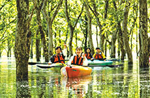 一年の中でも春限定の神秘的な風景です。白川湖に雪解け水が流れ込み、満水の時期を迎えると、シロヤナギがあたかも水中から生えているような幻想的な光景を見ることができます。